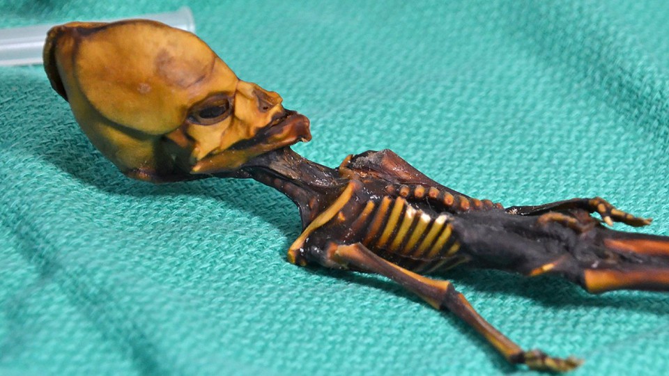 诺兰(Nolan)承认自己是“科幻小说的狂热读者”,他说,当他与一个名叫史蒂文·格里尔(Steven Greer)的人联系时,他的好奇心被激发了,他声称一个小骨骼可能是外星人。但是,骨骼后来被确定为人类,因为它包含“骨骼基因中的几个突变,可以解释生物学”。
