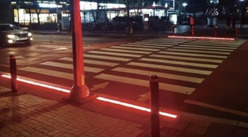 在2019年,这些地面LED信号灯被放置在韩国首尔。据说是作为试验的,灯光似乎已经演变为更永久的解决“ Smombies”问题的方法。