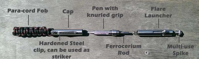 忍受生存的钢笔比这些人更有用的工具。火照明系统包括一个铁杖在忍受的外壳。淬火钢套管是翻倍的前锋。这允许用户生成所需的火花引起火灾,但如果你是短的易燃材料,你可以随时提取笔和燃烧它的核心设计。