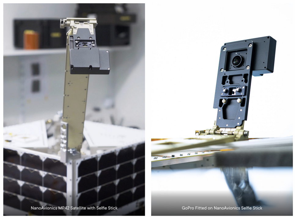 专有的空间级相机昂贵,有限且难以开发。纳米自动化学最近克服了任何开发问题,并选择了货架上的东西。该公司使用GoPro Hero 7安装在定制的自拍棒上,以拍摄来自这个世界的自拍照。