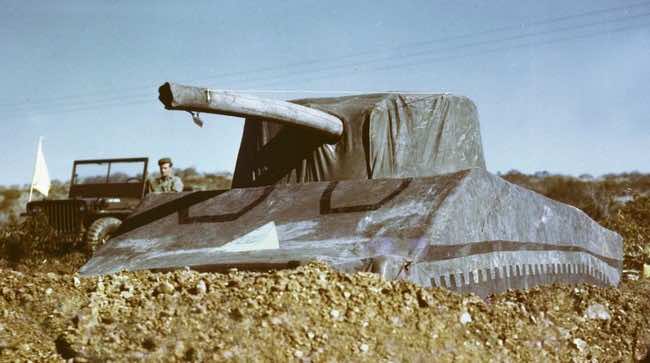 军队在制造了这些假人之后,甚至把它们伪装起来,让它们发挥作用。然而,他们故意去掉了一些伪装,以便来袭的飞机可以发现和扫射。他们制造了假营地,里面没有人,还挂着衣服。只有一个司机的人造车队给人一种大部队移动的感觉。