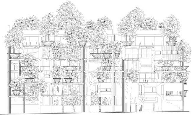建筑拥有63台,每一个受益于梯田和植被超出了他们的窗户和墙壁。每个工厂都有选择有目的地从各种植物在都灵。其余的房子会有来自地热供暖和冷却系统,和树木将浇灌雨水回收系统。其创新设计让我们回到我们的童年。建筑于2012年竣工。