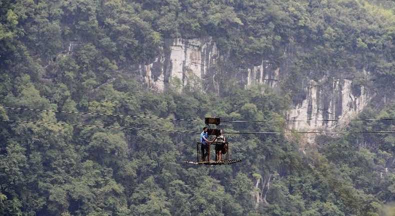 想象穿越一个滑行缆车在中国的偏远地区。你脚下是超过五百英尺的文字空间在地面出现之前,从缆车你几乎看不到树木,更不用说其他的事情。似乎是一个场景或直接敢敢在电视上显示,也绝对不是一个普通的日常。然而,整个村庄,这是唯一可能的通信线路。想象一下!