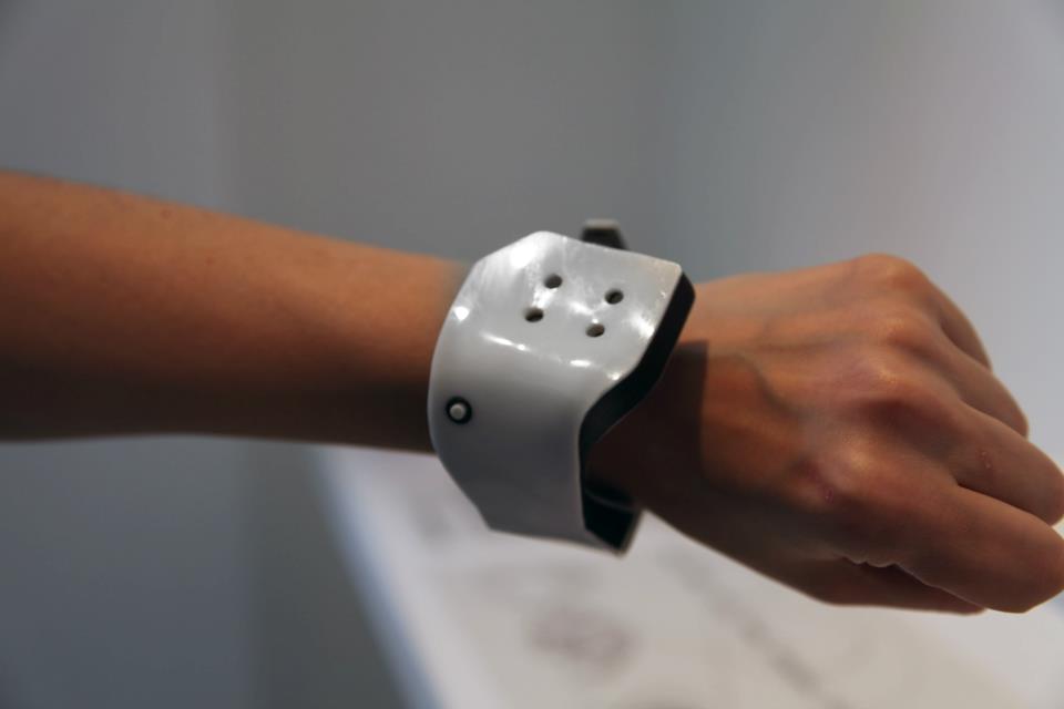 设计师是一位物理计算讲师,在纽约的帕森斯新学校工作。使用了四个香水瓶,并使用与一天中不同时间相关的香水来拿出这款原型手表。它基本上通过释放气味来增强时间感,因此,它可以不增加任何压力。