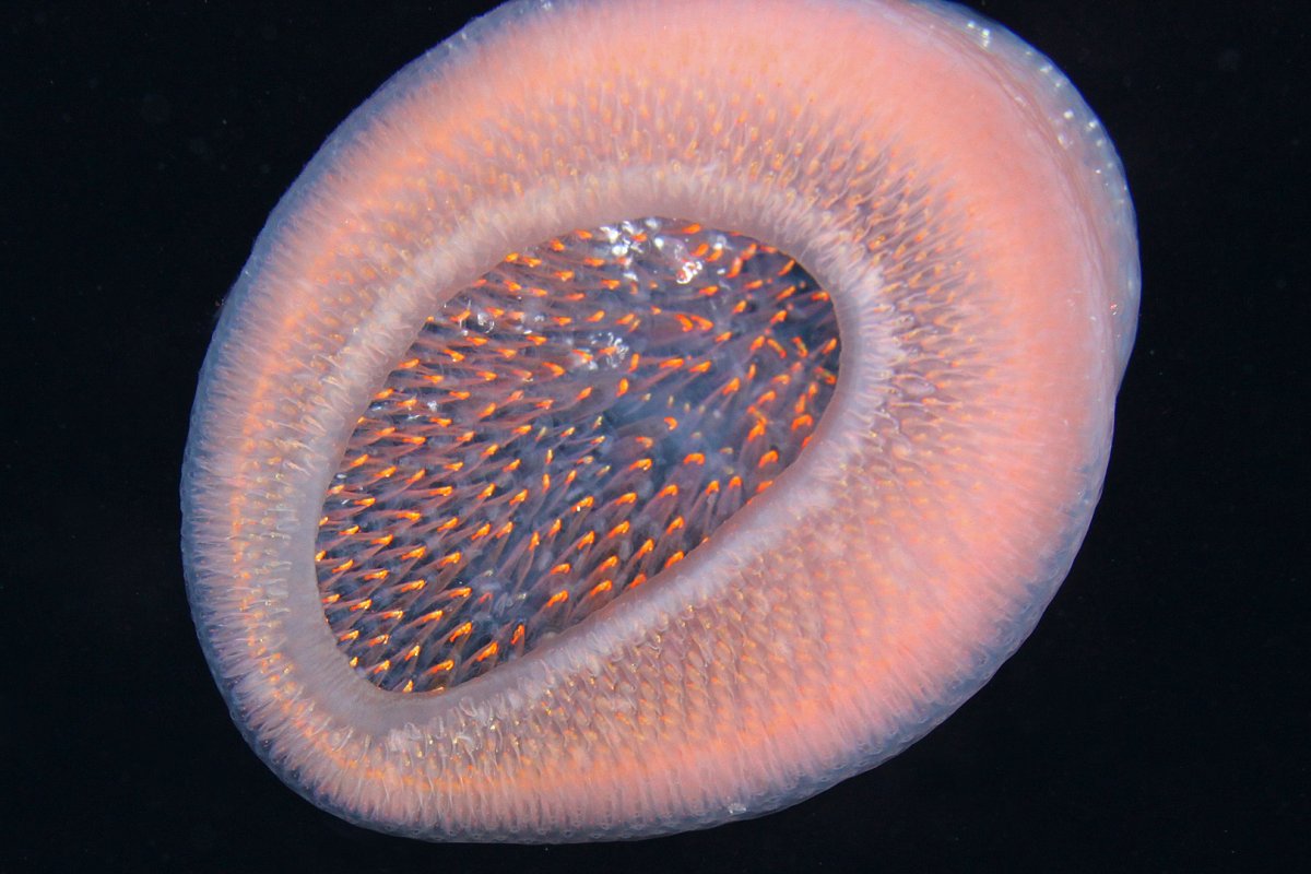 一旦你习惯了它们异常的体型,你就会在无边无际的海洋深处欣赏它们的美丽和面貌。它们很蓬松,摸起来很软。它们也不会对任何物理接触做出反应,因为它们根本没有那种反动机制。它的触感非常类似于果冻类生物。