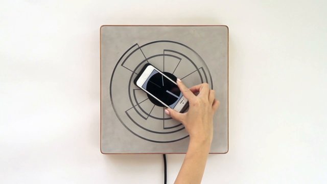 Spira使用电感充电向您的手机充电。在此过程中,框架中包含的热色彩涂料加热并揭示了复杂的螺旋模式。它带有一个随附的Spira应用程序,用于您的手机,该应用程序执行两个任务;一个人正在显示有助于记录充电过程的白色球体。每个球体的电池的10%代表。第二个任务是显示一个工作的模拟时钟。即使手机旋转,它仍然保持静态。框架上的螺旋设计充当时钟的脸部,应用显示了时钟的臂。