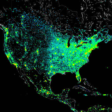 设备的密度与所使用的颜色。红色区域描述大量的网络化设备而绿色区域是留给低数量的设备。黑色的区域,如预期的那样,与没有任何信号区域。然而,马瑟先生指出,地图不准确,因为组织不允许ping请求的数量。这可以看到在中国的防火墙阻止了信号返回。