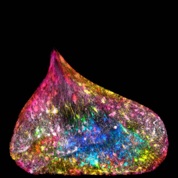 这些胎盘图片取自转基因小鼠,每只小鼠都有不同的免疫系统。“胎盘彩虹”是胎盘发育差异的结果,源于对雌性小鼠的操纵,这是为了理解并最终治疗人类怀孕期间出现的问题。