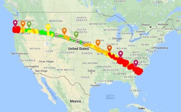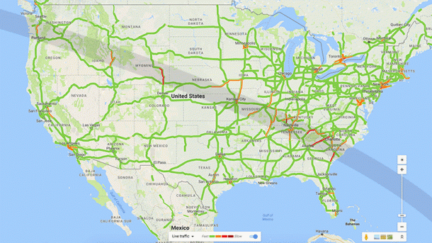 日食,大多数我们目睹了周一是期待已久。天文学家、摄影师和爱好者已计划多年来看到这个eclipse,他们做到了。你会看到一些壮观的和一些坏质量事件的照片,但你可能没有注意到的一件事是对我们疯狂的交通道路。疯了,我们不是说整个国家的道路。然而,交通集中形成了一种模式,就像影子由eclipse的道路。