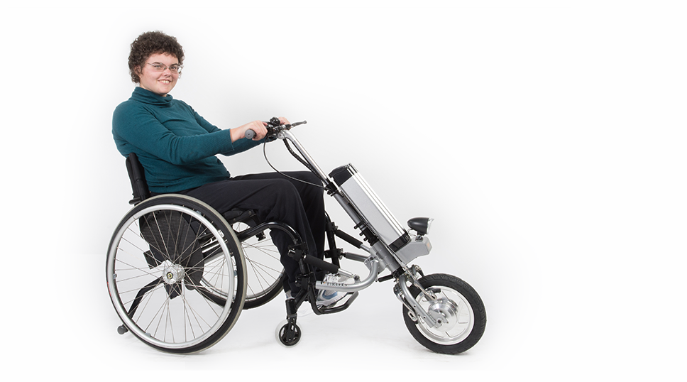 这个小装置可以安装在市场上的很多轮椅上,一旦固定,两个小前轮就会从地面升起,与地面失去联系。动力前轮拉动轮椅,最高时速可达每小时11英里。最好的部分是它不需要用户端的任何努力。