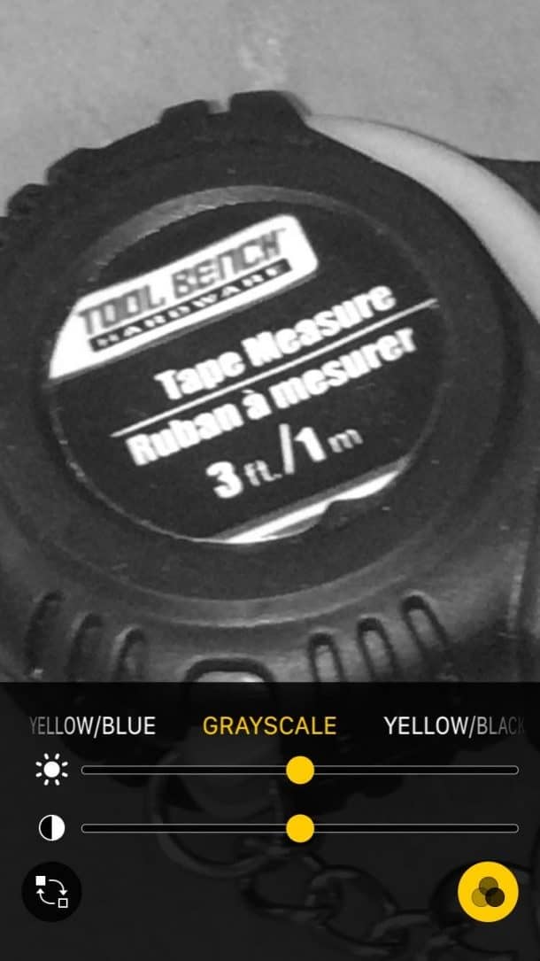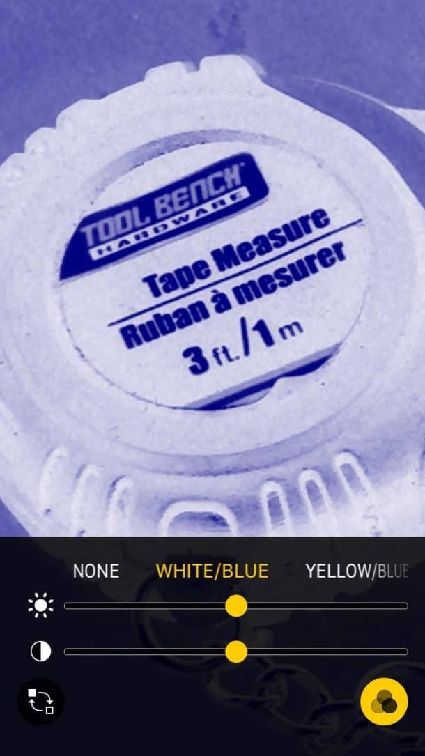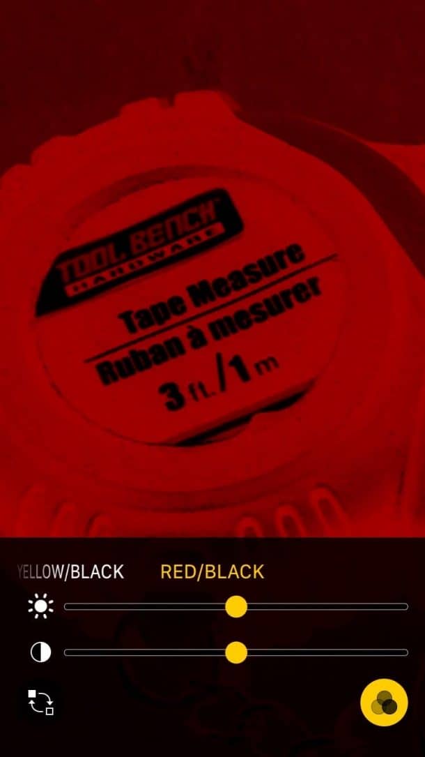 点击闪电螺栓图标以打开闪光灯,或使用滤镜图标调整对比度和亮度。Venn图位于右下角,将使您进入过滤器,您可以在其中更改颜色以适合您的视觉。您可以实时转动图像灰度或反转颜色。