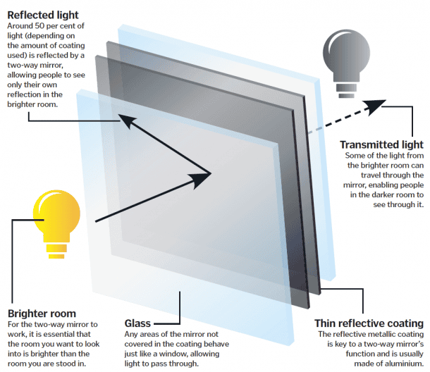 您正在观看犯罪戏剧,并在审讯场景中。关于场景的有趣的事情之一是,被告不知道侦探和行为分析师在镜子的另一侧看着他。在一场噩梦中,您可能会发现一个正在窥视玻璃的人令人毛骨悚然。不,这不是魔术,这要归功于双向镜子使它成为可能。