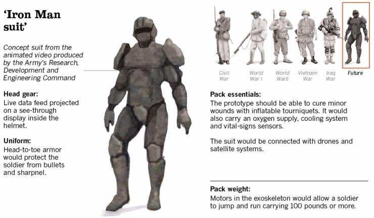 盔甲还可以接受皮肤接触,并不断分析士兵的状况,并将他/她的生命力反馈给指挥所。它还将在关键情况下提供水合和生活支持。
