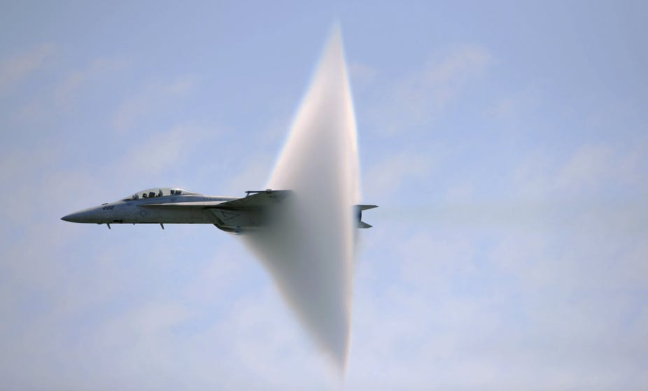 顺便说一下,音爆基本上是一种由喷气式飞机或飞机超过声速时产生的冲击波。冲击波经常被听到是“砰”的一声或在地面上的一声巨响。