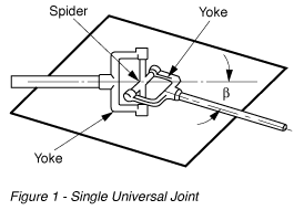 联合包括两个轭,一个在每个轴连接由一个十字形的成员称为“蜘蛛”。两轴之间的恒定角被称为操作角度,虽然它也可以改变。好的设计要求的操作角度小于25°。当一个万向节连接到轴的两端,它被称为一个恒定的速度。