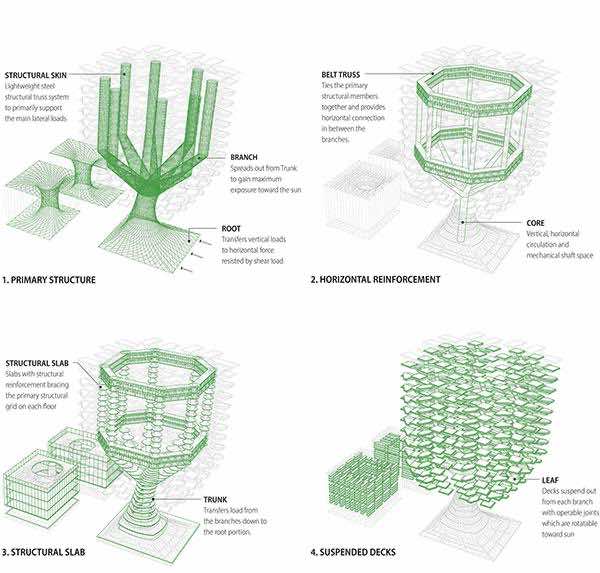 这个想法是在城市里安装这样的结构,它们将净化空气,清洁当地的水,并产生可再生能源。这个想法是相当迷人的(想想生活在洛斯洛里安)。该项目被称为城市天空农场,是一座525英尺高的摩天大楼,基本上是一个有生命的东西,将能够容纳超过150万平方英尺的房屋。一英尺的公共空间。