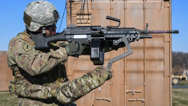 “我们实际上已经使用M249和M240B机枪进行了测试。”贝切尔说。“ M240B重27磅(12.2千克),我们能够证明您可以将该武器的重量完全从士兵的手臂上拿走。”