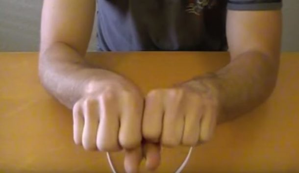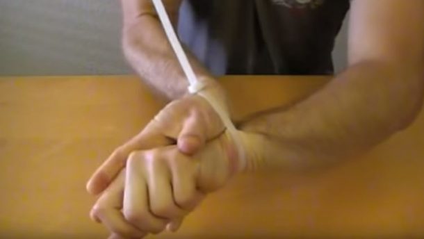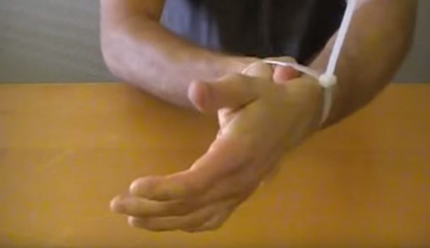 第二种方法在你完善它之前需要一点练习。该YouTube频道站着演示了他的方法,观众可以近距离观看他的双手是如何被绑起来的。