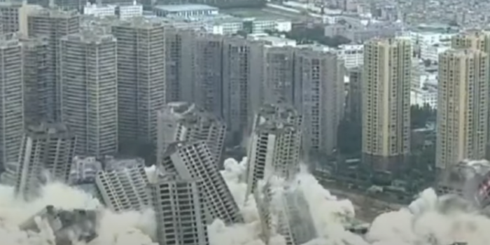 周五,在中国西南部发生了大规模拆除,在几秒钟内摧毁了15个高层塔楼(价值近10亿元人民币(1.54亿美元)),这是一个令人印象深刻的景象。