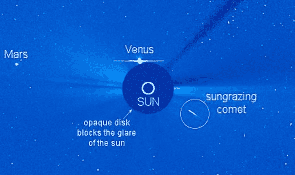 另一方面,有些类型的彗星有不同的描述参数。其中一颗彗星被称为“克鲁兹掠日彗星”,它被发现时距离太阳非常近。它们的起源可以追溯到几个世纪前,当时它们是一颗大型彗星碎片的结果。在过去的千年中,最亮的彗星之一被称为“池谷关”,于1965年被发现。一般来说,在白天的情况下,彗星经常被发现离太阳最近。因此,我们可以说,掠日动物的消失是由于太阳发出的强烈热量。这幅图展示了太阳的强大,甚至连彗星在它面前都无法抗拒。
