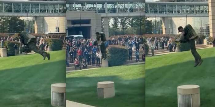 视频显示,他从一个水泥平台跳到30英尺外的另一个平台,就像超级马里奥从一根管子跳到另一根管子一样——这是喷气背包敏捷性的令人印象深刻的壮举,也仅仅是对可能性的预测。