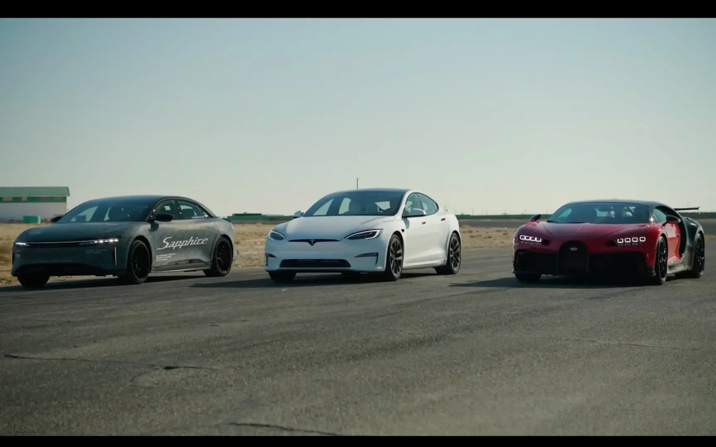 而清醒的空气蓝宝石和布加迪凯龙星Pur运动达到每小时156英里的高速,前者高于后者,特斯拉型号S格子的0.2秒。格子的最高速度只有152英里,但它是足够快的速度与布加迪。尽管如此,没有一个可以与空气蓝宝石。