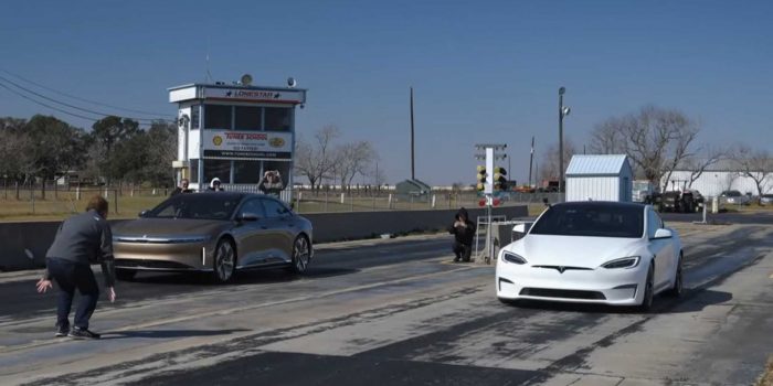 两辆汽车都以92%的费用开始。在第一轮比赛中,特斯拉Model S格子队以150.59英里 /小时的速度在9.83秒内完成了四分之一英里的胜利。但是在第二次奔跑中,Lucid Air以125.64英里 /小时的速度在10.21秒内完成了比赛。在第二次运行中,Model S格子无需使用启动模式而启动。然后在第三次运行中,Model S格子以146.02 mph的速度在9.67秒完成。还有一场比赛,其中两辆汽车在路上以40英里 /小时的速度开始比赛。在这种情况下,特斯拉再次获胜。