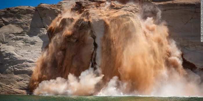 “我们看到在剧烈的降水事件和地震期间的岩石降落在增加,但显然,在视频中落石时没有这些条件,因此它的触发因素仍然未知,”犹他州地质调查的高级地质学家泰勒·努德森(Tyler Knudsen)告诉CNN。“水平的下降肯定可能是触发因素,但同样,我们不能确定这一点。我们确实知道,鲍威尔湖及其历史水平的波动的创造导致了落基落的产生。