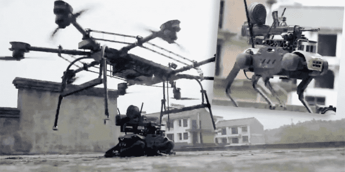 中国隼鹰防务公司正在开发着陆机器人的机器人系统。在视频中,一架无人机将一只武装狗扔到了机器人的屋顶上。虽然这项技术还在测试中,但官员们打算尽快开始大规模生产军用机器人。