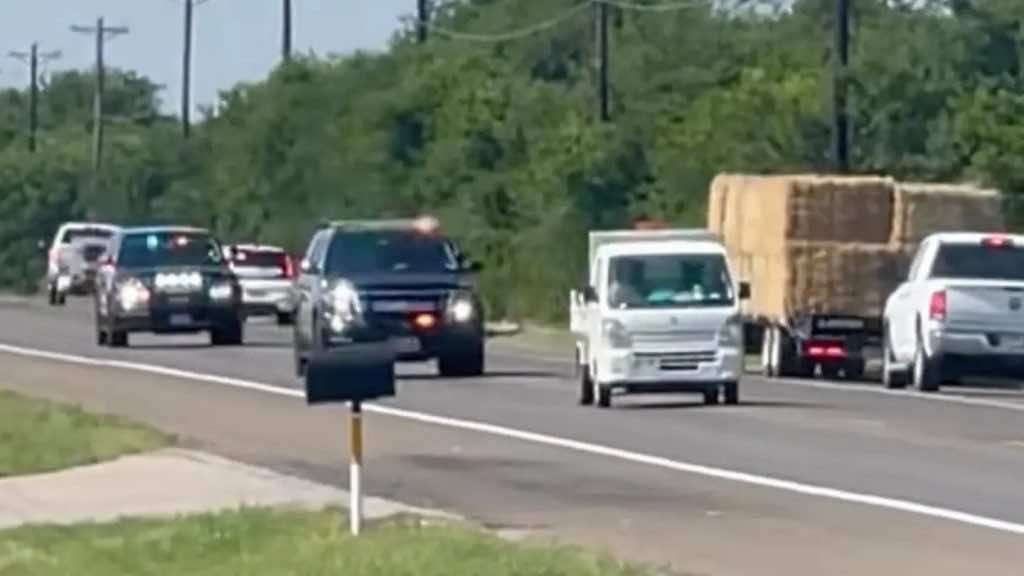 周一,德克萨斯州发生了一起令人震惊的事件,一辆小型日式卡车被警方的suv追赶。目击者把整个事件都记录了下来。对这辆2013年或更新的“铃木Carry Kei卡车”的追逐始于德克萨斯州奥布里和达拉斯-沃斯堡北部的Pilot Point之间的德克萨斯37号高速公路。高速追逐的主要原因还没有公布,但拍摄整个场景的旁观者说,这辆小皮卡是从附近的雷布拉斯韦尔高中被盗的。(下图是视频的快照)。