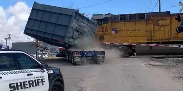 互联网上出现了一段新视频,显示德克萨斯州法本斯一辆满载卡车在铁轨上被撞。该视频记录了一起事故,一辆拉着Lowboy拖车的卡车卡在轨道上,并在那里停留了10分钟。每个人都预料到了最坏的情况,但没有人能够及时做出反应,一列火车最终以每小时约50英里的速度撞上了拖车。