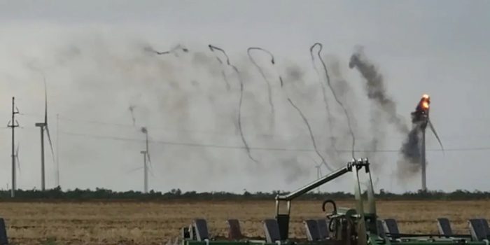 您可以在下面的视频中看到,即使在由于雷电而着火之后,风车仍在旋转,但是这次,叶片正在燃烧,从而导致烟环的形成。但是,一秒钟过去了,大火变得更加激烈,从而导致风车的整个结构瓦解。但是,制作视频的人说:“这真是太疯狂了!”