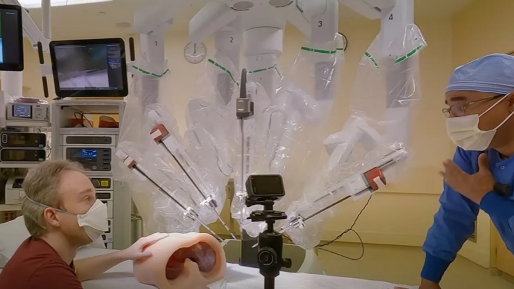 英国youtube用户汤姆·斯科特(Tom Scott)通过观看机器人在他的3d打印腹部复制品上进行手术,进行了这样的演示。