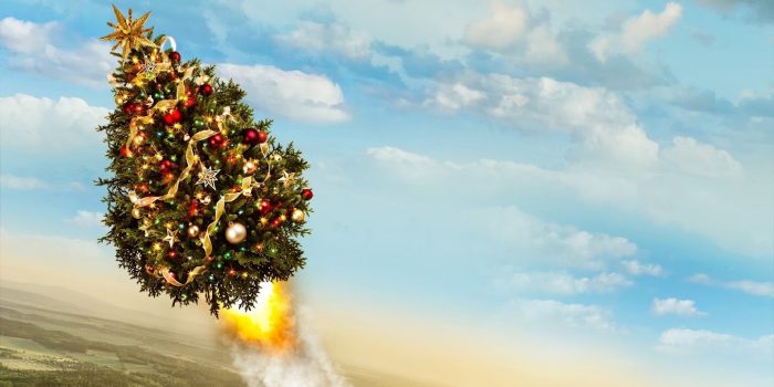 YouTube上的BPS太空通道显示,火箭驱动的圣诞节在300英尺的高度上射出。迷恋,壮观的景象,对于某些人来说,我们在假期期间向亲人开枪射击的事实的隐喻占用,就像圣诞树脱落的方式一样,留下了地面。