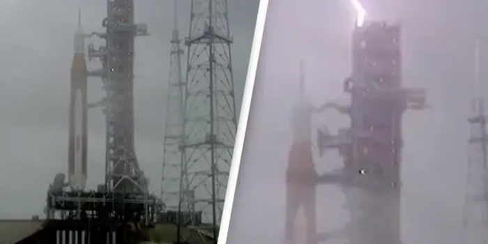 在星期六(4月2日),Lightning多次击中了NASA大型Artemis-i Lunar Rocket的发射场,但火箭似乎没有受到伤害。