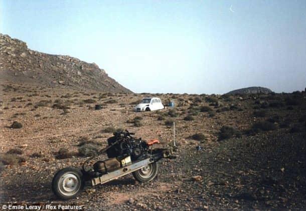 这名43岁的男子当时正驾驶着他的老爷车穿过摩洛哥城市谭谭,但他在一个军事检查站被拦下,他被禁止再往前走。勒雷身上的冒险火花让他在禁区里跑开了。在沿着岩石地形行驶时,汽车放弃了他,在撞到一块岩石后停了下来。这辆车的轮轴断了,底盘也损坏了,再也不能开了。