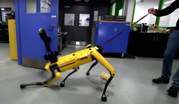 当看到波士顿动力公司的SpotMini机器狗自己开门时,人们都吓坏了。该公司想表明这并不是什么大不了的事,所以他们发布了另一段视频,视频显示机器狗试图开门时被一名手持曲棍球棒和一副安全眼镜的男子不断干扰。视频显示,机器人SpotMini很容易就被武装男子吓倒。因此,人们可以有一种解脱,他们没有被开门机器人杀死的危险。