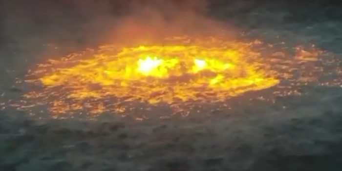 第一个视频由Twitter用户曼努埃尔·洛佩兹·圣马丁(Manuel Lopez San Martin)发布,它显示了海洋的表面,在景色的景象上燃烧着索伦本身的眼睛。进一步的视频显示,部署了许多船只以扑灭大火。