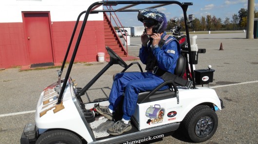 斯蒂恩说,这次尝试是在一辆Club Car高尔夫球车上进行的,这辆车改装了Plum Quick的“黑色行动”高性能马达和锂离子电池组。斯蒂恩说,在他的父亲和父亲的合作下,经过一周的测试,这辆车能够行驶四分之一英里,达到每小时118.76英里的速度。