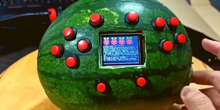 我们不知道该不该叫它吃瓜男孩。然而,我们所知道的是,这款所谓的水果GameBoy由一块板树莓派组成,有效地连接到一个迷你LCD屏幕、游戏按钮和一个外部电池组。所有这些成分以最好的方式组合成一个西瓜。