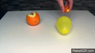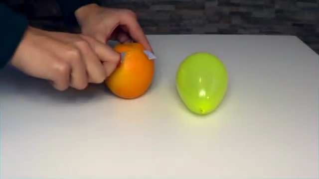 切断果皮后,您将其喷在一个气球上。这就是接下来发生的事情。