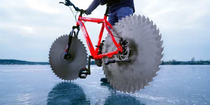 大多数伟大的事情从素描和有很多业余时间的工程师开始。YouTube频道Q在他构建的视频中展示了一辆自行车 - 但是,它具有非常规的设计。它的轮子上有圆形锯,并且可以在冰上骑行,使其成为一个冰冷的循环。