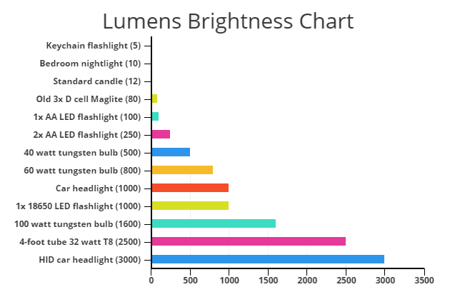 腔的测量总发出可见光光源,可以被人类的眼睛。越亮的光源,它的价值在流明。下面的图表将给你一个想法流明的亮度来衡量。