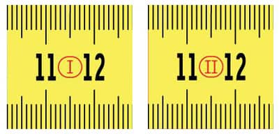 这些圈起来的罗马数字有时会出现在两者之间,代表着卷尺的精确程度。的小数字越多,你的磁带就越准确。没有这些标记的磁带不能保证精确度。