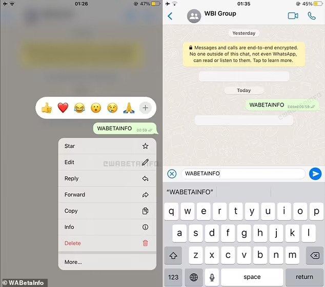 编辑在早期阶段的构建。所以WhatsApp可能使其他调整部件,或开发人员甚至可能决定不推出这个功能。,《每日邮报》报道。