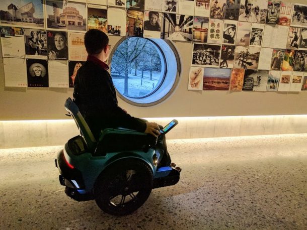 该团队在2015年推出了原型,并将其命名为IT Scalevo。轮椅使用两个大型Segway的车轮在地面航行时保持平衡。椅子用来丢下一组橡胶轨道,以航行楼梯。然后,团队改进了设计,制作了更光滑,精致的版本。scewo。第二代设计是更进一步的市售产品的一步,它可能会让您有X战警的Charles Xavier的感觉。