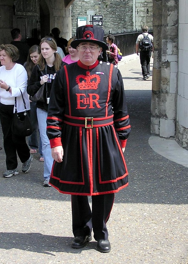 全称是“女王陛下的皇宫和伦敦塔要塞的自卫军守卫,以及君主的特别自卫军卫队成员”。困惑吗?嗯,他们守卫着伦敦塔,但现在是导游。这些士兵通常被称为“Beefeaters”。