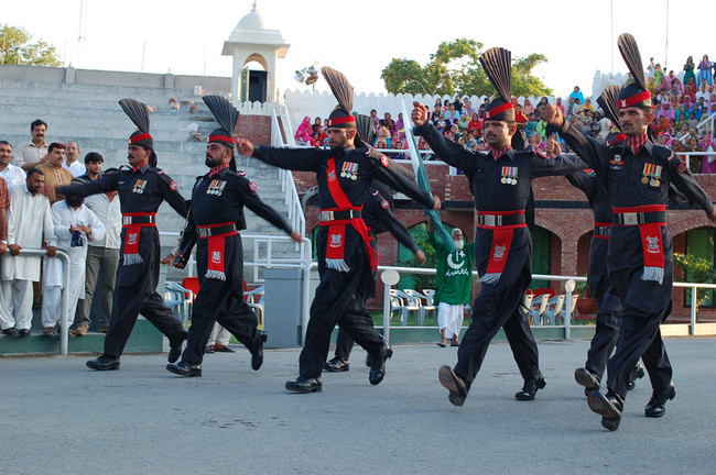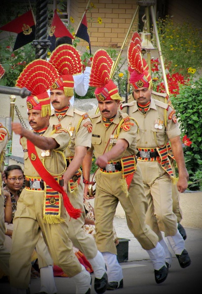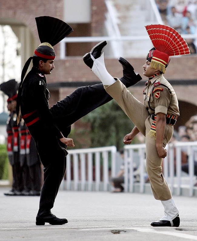 印度选择了较浅的橙色和卡其色方案,但其余的或多或少是一样的。这张照片是在巴印边境瓦赫加边境换岗期间拍摄的,这种事每天都在发生。