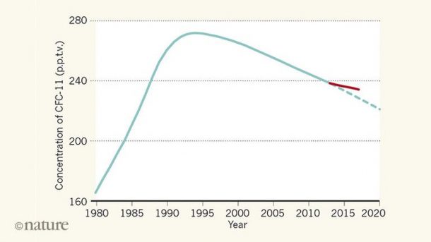 自2010年以来,世界各地停止使用氟氯化碳产品,取而代之的是更清洁、更安全的产品。臭氧层完全恢复,被认为是环保运动最成功的故事之一。然而,美国国家海洋和大气管理局的一项新研究表明,氯氟烃仍然以某种方式存在于大气中。美国国家海洋和大气管理局在世界各地设有多个监测站,不断监测空气中各种化学物质的含量。氟氯化碳在20世纪90年代中期达到峰值后,一直呈下降趋势。但从2012年左右开始,下降速度放缓,氟氯化碳开始再次进入大气。