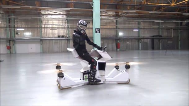 而大公司保持风险缓解”作为最高的担忧,后院爱好者不介意危及自己实验室的老鼠。这个莫斯科气垫船的四轴飞行器设计看起来像一个冒险的自行车。视频发布功能骑士身穿轻型摩托车齿轮在一个仓库中,徘徊在足够高,屋顶随时联系。